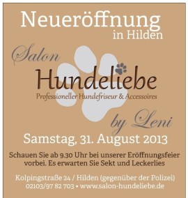 Am 31. August 2013 haben wir unseren Hundesalon in Hilden eröffnet